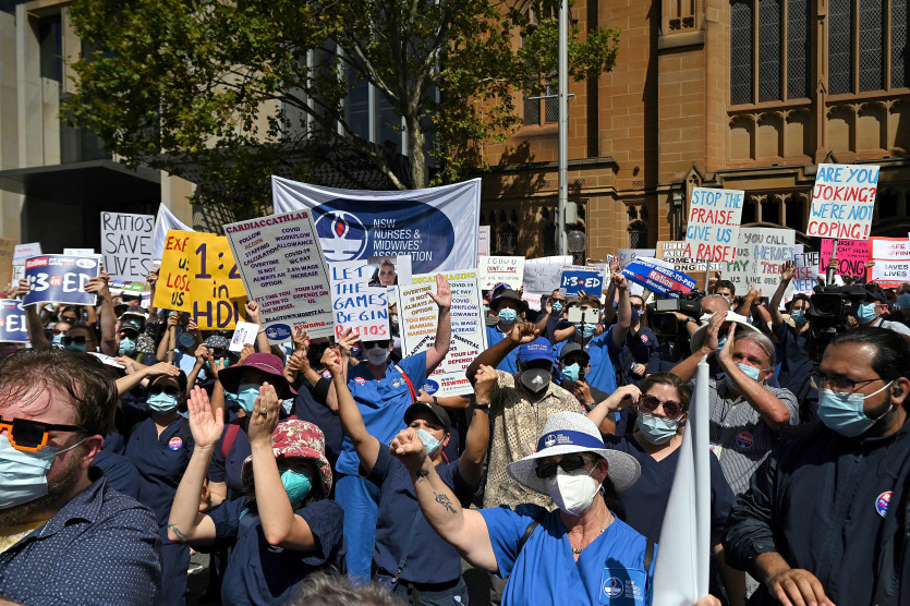 - Des milliers d'infirmières ont débrayé mardi à Sydney, pour protester contre les manques d'effectifs et le stress lié à la pandémie.Bravant une interdiction de faire grève, des milliers de blouses blanches ont défilé mardi en direction du parlement local pour dénoncer leurs conditions de travail. La foule d'infirmières a chanté et applaudi pour exprimer sa colère face à la pénurie persistante de lits d'hôpitaux et d'éIl vous reste 86% de l'article à découvrir.Cet article est réservé aux abonnés.