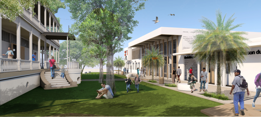 Une allée piétonne traversera de part en part le site. Photo DRCôté extérieur, les arbres les plus vieux et majestueux doivent être déplacés ou transplantés sur place (à l’exception d’un manguier). Les jardins disposeront notamment d’aires de jeux et de différents espaces pédagogiques pour inviter le public à davantage flâner sur le site.