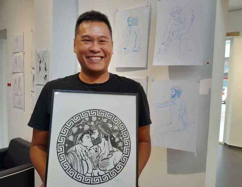 - Anthony Tejero | Crée le 13.01.2024 à 05h05 | Mis à jour le 13.01.2024 à 09h15ImprimerL’artiste instagrameur Fabien N’Guyen, dit ArtbyFab, expose certains de ses dessins, notamment réalisés lors de cours avec des modèles vivants, à la galerie Art Factory, jusqu’au 12 février. Photo Anthony TejeroL’artiste calédonien Fabien N’Guyen, dit ArtbyFab, s’est fait connaître dans le monde entier grâce à ses réseaux sociaux, Instagram en tête, où il cumule plusieurs dizaines de milliers d’abonnés. Avec ses dessins tintés d’érotisme et inspirés de l’univers des comics, celui qui se qualifie "d’illustrateur gay et LGBT" rayonne de plus en plus à l’étranger. Pour autant, une partie de son travail est actuellement exposée à la galerie Art Factory de Nouméa, jusqu’au 3 février. Rencontre.