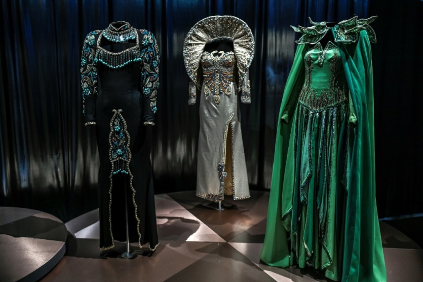 Des robes de Dalida sont présentées le 19 août 2021 à l'Institut du monde arabe, à Paris, dans le cadre de l'exposition "Divas" STEPHANE DE SAKUTIN [AFP]MERCI DE VOUS IDENTIFIER