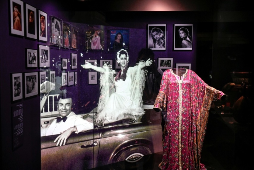 Une partie de l'exposition "Divas", à l'Institut du monde arabe à Paris le 19 août 2021, consacrée à Warda STEPHANE DE SAKUTIN [AFP]