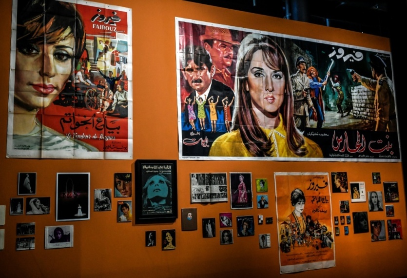 Une partie de l'exposition "Divas", à l'Institut du monde arabe à Paris le 19 août 2021, consacrée à la chanteuse libanaise Fairouz STEPHANE DE SAKUTIN [AFP]