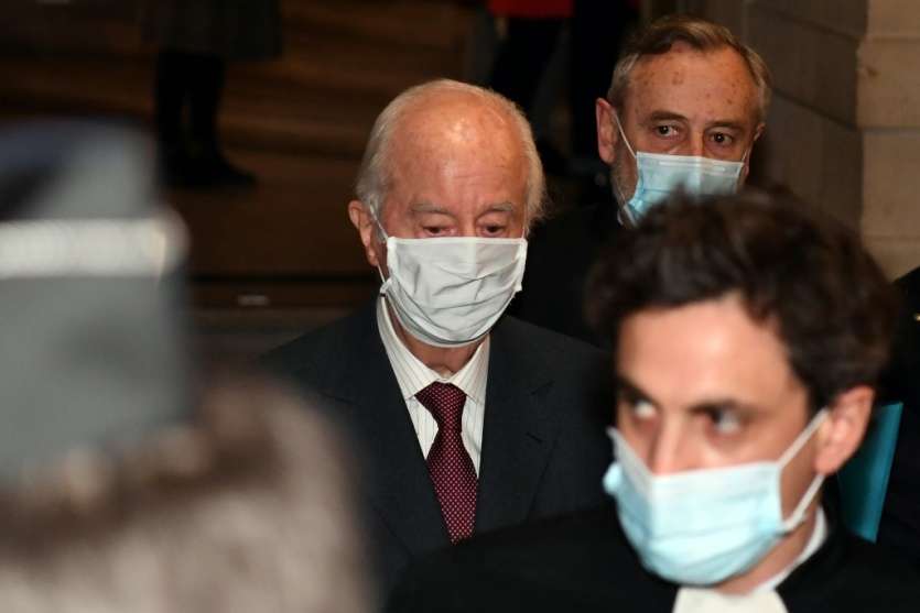 L'ancien locataire de Matignon, 91 ans, s'était lentement avancé vers le centre de la salle d'audience, où il comparaît au côté de son ancien ministre de la Défense François Léotard, 78 ans.