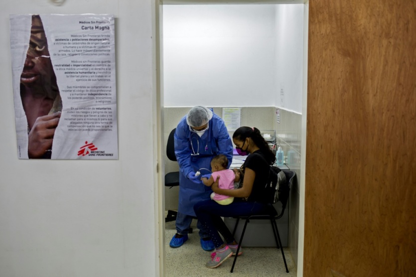 - | Crée le 03.05.2021 à 16h10 | Mis à jour le 03.05.2021 à 17h10ImprimerUn médecin du centre de santé de Médecins sans frontières (MSF) reçoit en consultation une femme et son bébé, le 17 mars 2021 à Vidoño, au Venezuela Pedro Rances Mattey [AFP]"Tu n'es pas enceinte!", indique l'infirmière. Deiglis, 17 ans, souffle, soulagée. Elle a déjà du mal à s'en sortir avec le bébé de 5 mois qu'elle tient dans les bras au centre de santé de Médecins sans frontières (MSF) de Vidoño, à quelque 300 kilomètres à l'est de Caracas.