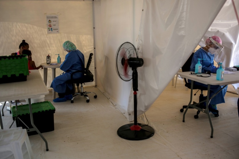 Une soignante du centre de santé de Médecins sans frontières (MSF) reçoit en consultation une femme et son bébé, le 17 mars 2021 à Vidoño, au Venezuela Pedro Rances Mattey [AFP]