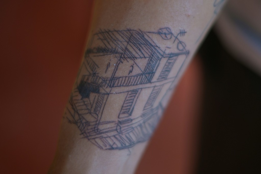 Il a également un grand nombre de tatouages, dont un fait tout récemment sur son avant-bras, juste après l'annonce du prix : l'image de sa petite maison devenue célèbre dans le monde entier, après l'avoir emporté face à des constructions bien plus imposantes en Inde, au Mexique, au Vietnam et en Allemagne.