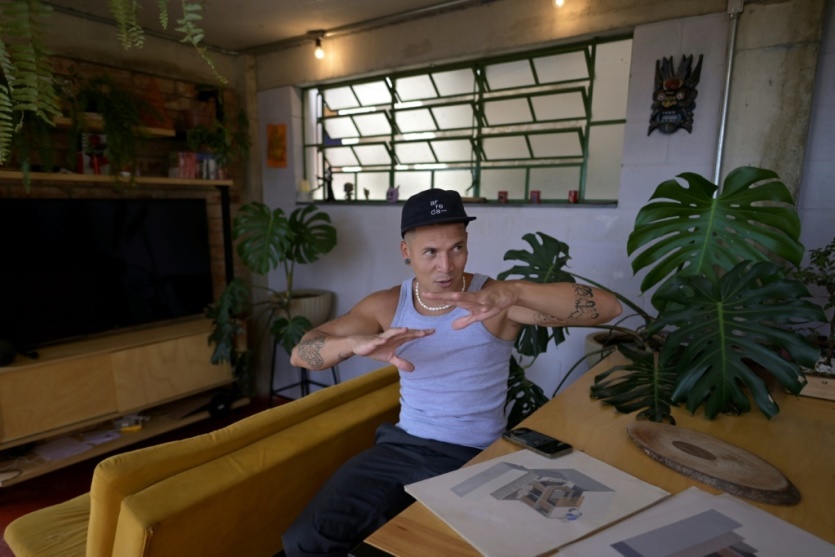 L'artiste Kdu dos Anjos dont la maison a été désignée "maison de l'année" par le site spécialisé Arch Daily, lors d'une interview avec l'AFP, le 24 février 2023 dans la favela Aglomerado da Serra, en périphérie de Belo Horizonte, au Brésil Douglas MAGNO [AFP]MERCI DE VOUS IDENTIFIER
