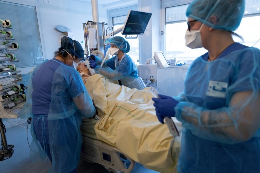 Des soignants interviennent auprès d'un malade du Covid dans une unité d'urgence à l'hôpital de la Pitié-Salpetrière à Paris, le 30 novembre 2021 Thomas SAMSON [AFP]MERCI DE VOUS IDENTIFIER