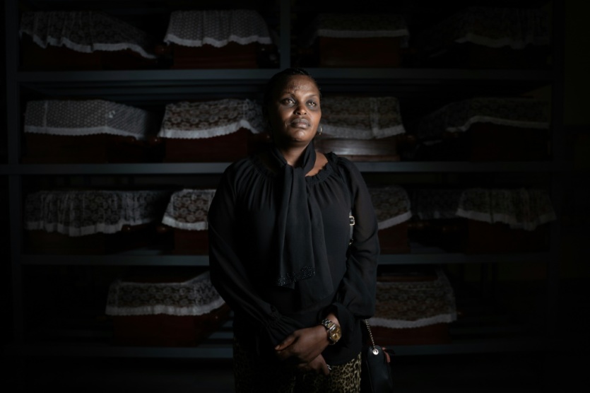 La Rwandaise Albertine, 48 ans, seule survivante de sa famille au génocide. A Kibuye, le 1e décembre 2020 Simon Wohlfahrt [AFP]