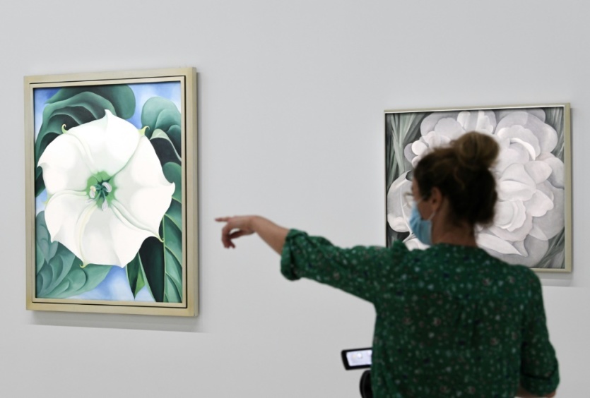 Tableaux de Georgia O'Keefe exposés le 6 septembre 2021 au Centre Pompidou, à Paris, qui lui consacre une rétrospective ALAIN JOCARD [AFP]MERCI DE VOUS IDENTIFIER