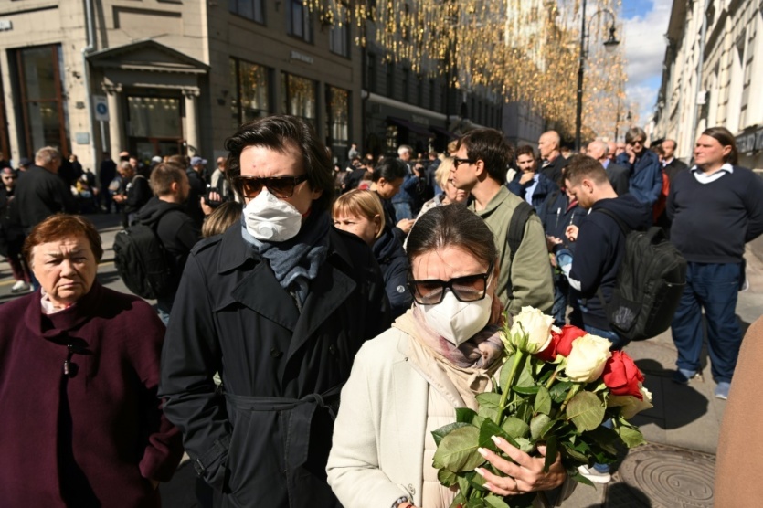 Des personnes font la queue pour rendre un dernier hommage à Mikhaïl Gorbatchev, dernier dirigeant de l'Union soviétique, devant la Maison des Syndicats où son cercueil est exposé, le 3 septembre 2022 à Moscou NATALIA KOLESNIKOVA [AFP]