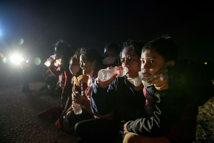 Des femmes et des enfants venus du Honduras et du Guatemala ont débarqué illégalement à Roma, au Texas, en traversant le Rio Grande depuis le Mexique le 27 mars 2021 Ed JONES [AFP]