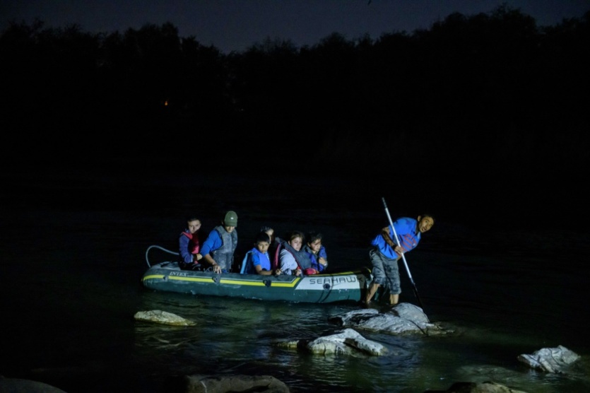 Des migrants franchissent illégalement la frontière entre le Mexique et les Etats-Unis près de Roma, au Texas, transportés en bateau par des passeurs le 27 mars 2021 Ed JONES [AFP]