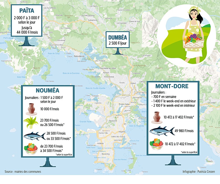 - Est-ce que les places au marché de Nouméa coûtent plus cher qu'ailleurs ? Interpellés à plusieurs reprises sur la question, nous avons décidé de comparer. Décryptage.Fin 2021, la mairie de Nouméa avait décidé d'augmenter le tarif des emplacements du marché municipal. Parmi les questionnements des commerçants, une comparaison du prix des places avec les autres marchés de l'agglomération. Nous avons donc fait le point avec les structures. Une différenceIl vous reste 93% de l'article à découvrir.Cet article est réservé aux abonnés.