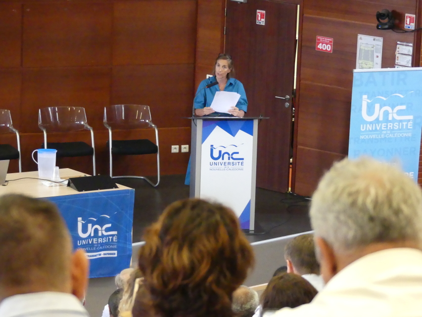 - Baptiste Gouret | Crée le 02.02.2024 à 17h48 | Mis à jour le 02.02.2024 à 17h48ImprimerCatherine Ris, présidente de l’Université de la Nouvelle-Calédonie, a présenté les perspectives 2024 de l’UNC lors de la rentrée solennelle, vendredi 2 février sur le campus de Nouville. Photo Baptiste GouretTrois jours avant d’accueillir plus de 3 000 étudiants, l’UNC a fait sa rentrée solennelle, ce vendredi. L’occasion pour la direction de dévoiler les grands projets de cette année, tous animés d’un même objectif : "améliorer la réussite étudiante et la recherche".