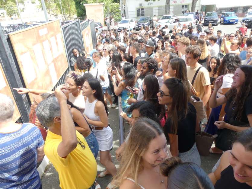 À l’approche de l’heure fatidique, parents et élèves sont encore massés devant les rubalises et les barrières métalliques qui les tiennent éloignés du lieu d’affichage. Des professeurs sortent les bras chargés des panneaux de résultats. Un frémissement traverse la foule de lycéens.