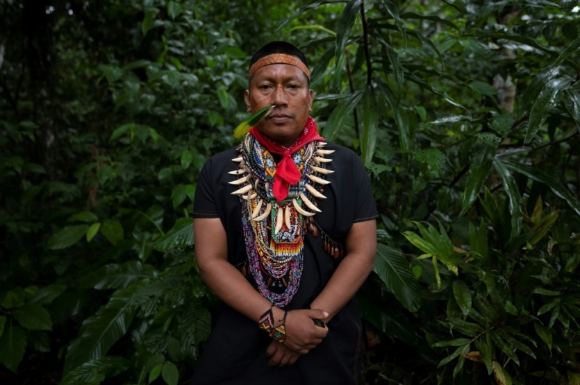 Alex Lucitante, l'un des leaders de la communauté indigène Cofan Avie, le 15 janvier 2023 à Lago Agrio, dans la région amazonienne du nord de l'Equateur Pedro PARDO [AFP]