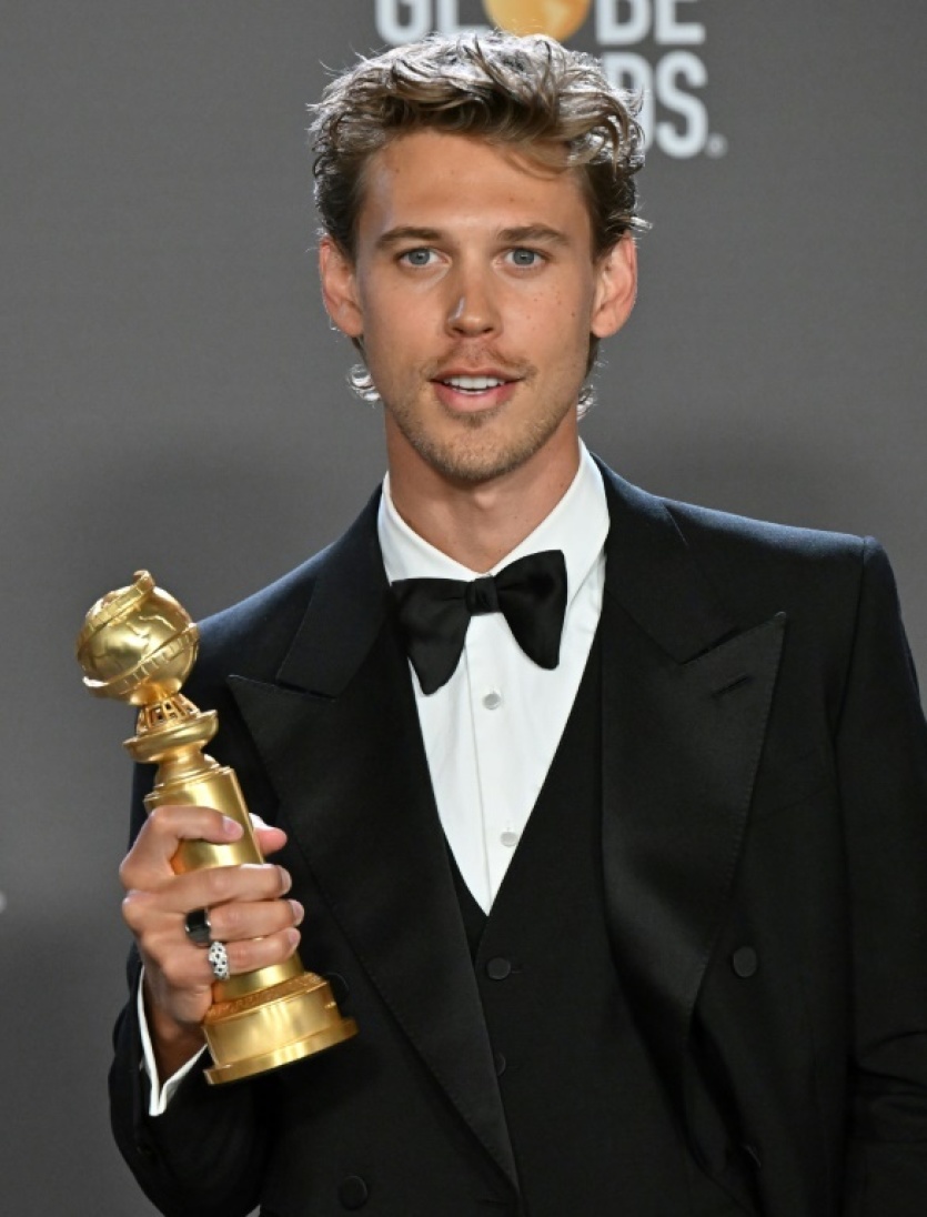 L'acteur américain Austin Butler reçoit son Golden Globes, le 10 janvier 2023 près de Los Angeles, pour son rôle-titre dans le biopic "Elvis" Frederic J. Brown [AFP]