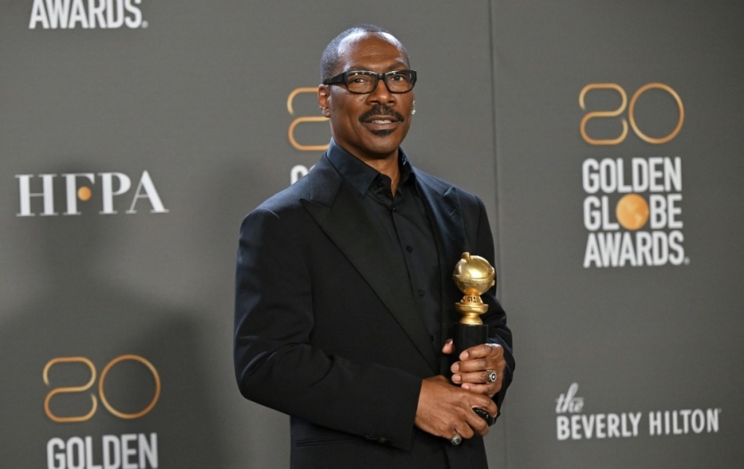 L'acteur américain Eddie Murphy avec son Golden Globe d'honneur pour l'ensemble de sa carrière, le 10 janvier 2023 près de Los Angeles Frederic J. Brown [AFP]MERCI DE VOUS IDENTIFIER