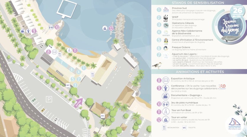 Des actions de sensibilisation et d’information animées par différents partenaires tels que l’Agence néo-calédonienne de la biodiversité, l’Aquarium des Lagons, le Centre d’initiative à l’environnement ou encore Opérations Cétacé ainsi que nombreuses activités gratuites sont proposées aux familles.