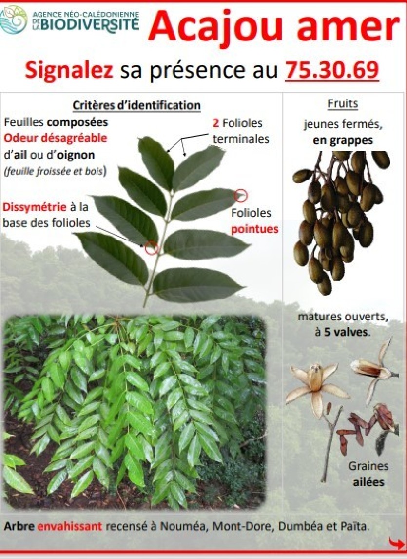 - Anthony Tejero | Crée le 11.01.2024 à 05h00 | Mis à jour le 11.01.2024 à 05h00ImprimerFin décembre, l’ANCB a entamé une nouvelle campagne d’élimination des acajous amers au Mont-Algoué. Photo ANCBStopper la progression de l'acajou amer tant qu'il en est encore temps. C'est tout l'enjeu des récents chantiers d'élimination de cet arbre exotique envahissant qui menace la biodiversité locale et plus particulièrement les forêts sèches. Des campagnes qui ont pour but de cantonner la présence de cet arbre à l'agglomération du Grand Nouméa.