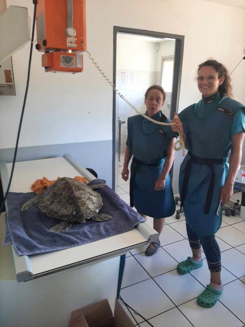 Baptisée Azzedine, la tortue est actuellement à l’Aquarium des lagons pour y être soignée. Photo DRUne fois les premiers soins prodigués, l’association a contacté les gardes nature qui ont ensuite fait appel à un vétérinaire. Verdict : la tortue souffre d’une occlusion intestinale. L’animal a ensuite été transporté à l’Aquarium des Lagons où le personnel tente actuellement de le soigner naturellement, (avec de l’huile de paraffine).