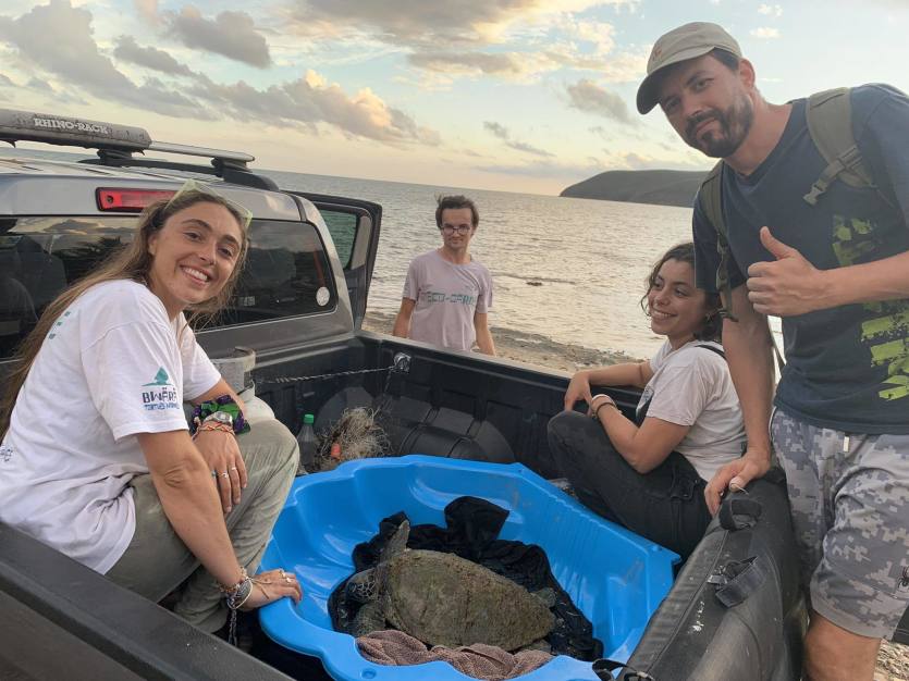 - A.T. | Crée le 03.01.2024 à 18h20 | Mis à jour le 03.01.2024 à 18h27ImprimerLes bénévoles de Bwärä tortues marines ont secouru l’animal échoué, à Déva. Photo DRLa tortue, qui souffre d’une occlusion intestinale, a été découverte sur la plage de Déva le week-end du Nouvel an. Grâce aux bons réflexes des bénévoles de l’association Bwara, tortues marines, l’animal a pu être secouru à temps et évacué à l’aquarium des Lagons où il est actuellement soigné.