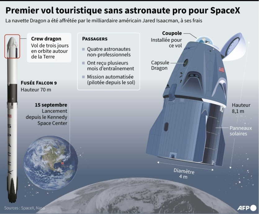 Premier vol touristique sans astronaute professionnel pour SpaceX Simon MALFATTO [AFP]