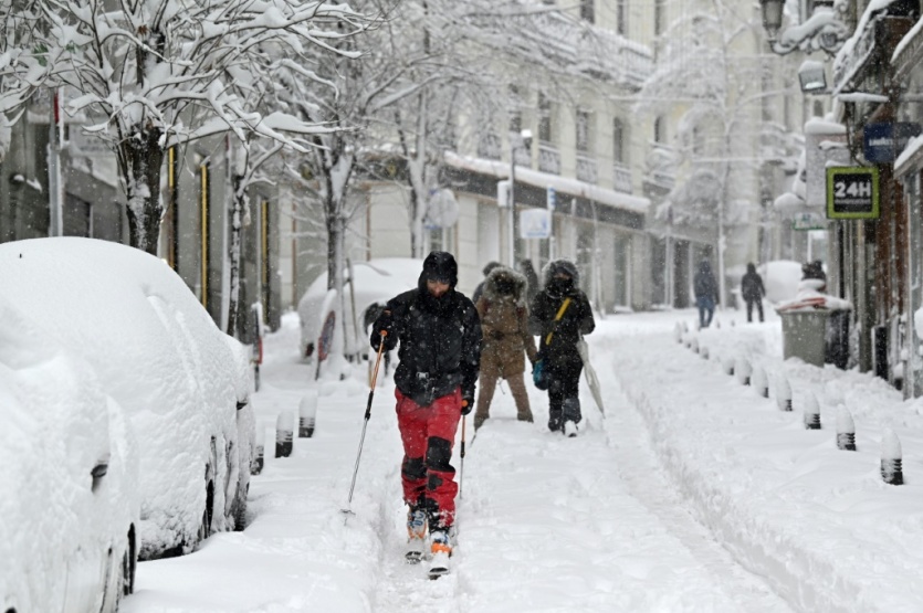 Arbres au sol sous l'effet de la neige et du vent, voitures abandonnées et trottoirs impraticables: à Madrid, recouverte par un manteau neigeux inédit depuis un demi-siècle, des habitants ont sorti leurs skis comme sur la célèbre place de la Puerta del Sol ou même un traîneau tiré par cinq chiens, selon les images prises par l'AFP.