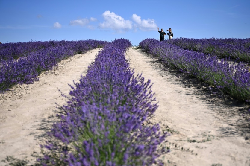 Des visiteurs dans un champ de lavande à Sale San Giovanni, près de Cuneo, dans le nord-ouest de l'Italie, le 29 juin 2021 MARCO BERTORELLO [AFP]