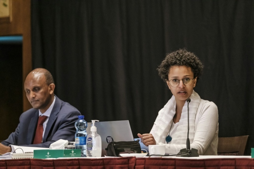 Le chef de la Commission éthiopienne des droits de l'homme Daniel Bekele et sa directrice de cabinet Albab Tesfaye présentent le rapport sur le conflit au Tigré, à Addis Abeba le 3 novembre 2021 EDUARDO SOTERAS [AFP]