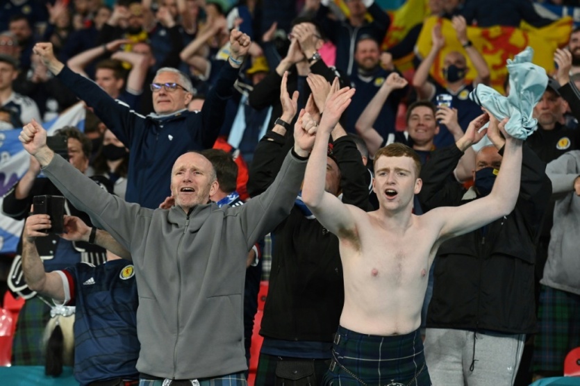 Des supporters écossais dans le parcage visiteurs à Wembley à l'occasion du match contre l'Angleterre dans le groupe D de l'Euro, le 18 juin 2021 JUSTIN TALLIS [POOL/AFP/Archives]MERCI DE VOUS IDENTIFIER