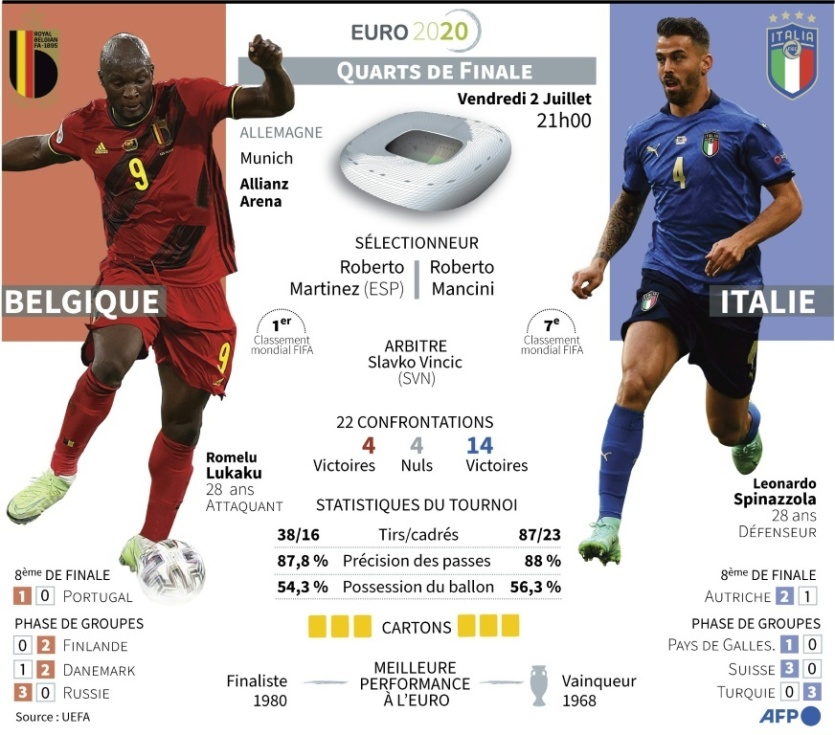 Présentation du match de quart de finale de l'Euro 2020 de football, Belgique - Italie du vendredi 2 juillet 2021 Vincent LEFAI [AFP]