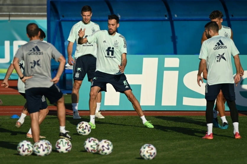 Les joueurs espagnols préparent leur quart de finale de l'Euro contre la Suisse, lors d'une séance à Saint-Pétersbourg, le 30 juin 2021 Kirill KUDRYAVTSEV [AFP/Archives]MERCI DE VOUS IDENTIFIER