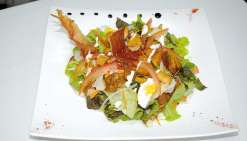 - RecetteFaire sécher les tranches de jambon serrano sous le gril du four pendant 2 minutes à 200 °C. Découpez les cuisses de poulet désossées en cubes. Faites-les pocher pendant 20 minutes dans de l’eau salée. Egouttez-les puis faites les revenir dans une poêle pour bien les colorer. DéIl vous reste 80% de l'article à découvrir.Cet article est réservé aux abonnés.