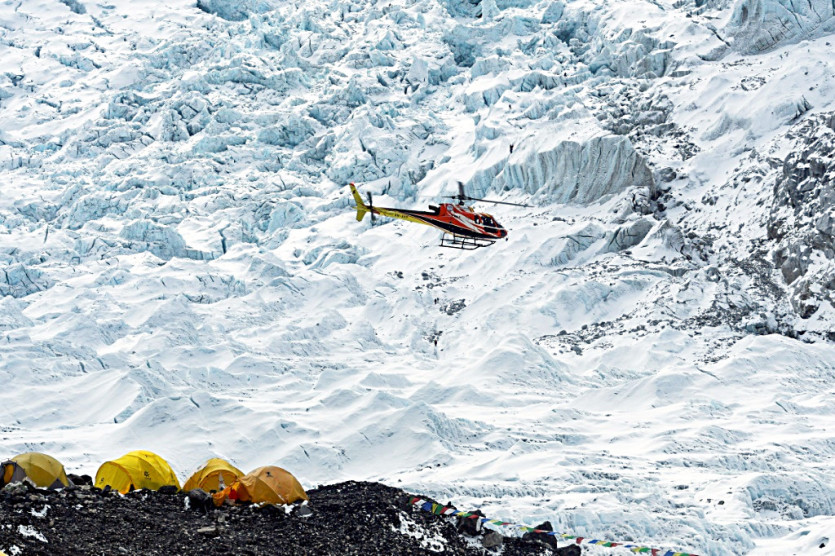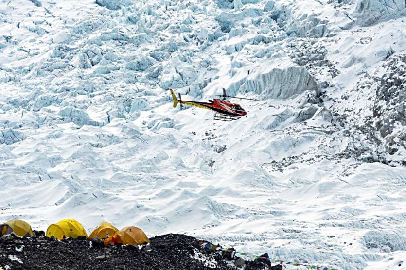 - | Crée le 13.05.2021 à 17h10 | Mis à jour le 13.05.2021 à 18h10ImprimerUn hélicoptère survole le camp de base de l'Everest, le 2 mai 2021 au Népal PRAKASH MATHEMA [AFP/Archives]Deux alpinistes étrangers, un Américain et un Suisse, ont trouvé la mort dans l'Everest, ont annoncé jeudi les organisateurs de l'expédition au Népal.
