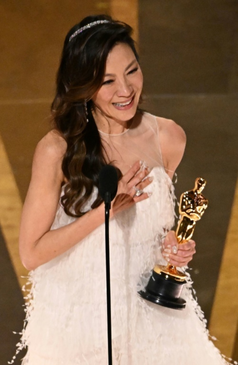 "Merci à l'Académie, ceci est l'Histoire en marche", a lancé la Malaisienne Michelle Yeoh, héroïne du film et première actrice d'origine asiatique récompensée par l'Oscar de la meilleure actrice.