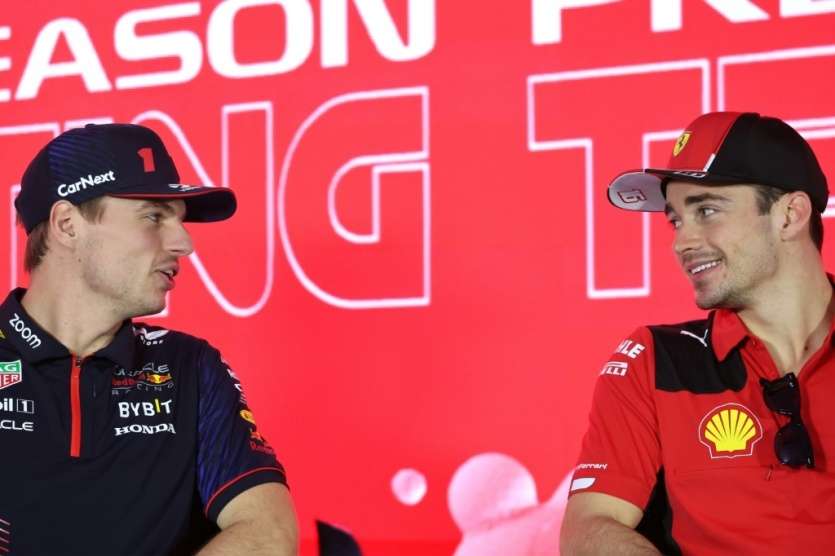 - | Crée le 28.02.2023 à 15h36 | Mis à jour le 01.03.2023 à 01h36ImprimerLe Néerlandais Max Verstappen (g), champion du monde en titre de F1, et le Monégasque Charles Leclerc, vice-champion du monde, le 25 février 2023 à Bahreïn Giuseppe CACACE [AFP]Red Bull et son champion en titre Verstappen ne feront-ils qu'une bouchée de la concurrence? A l'aube de la plus longue saison de l'histoire de la Formule 1 qui débute dimanche à Bahreïn, Ferrari se place en pole position pour tenter de contrarier les plans de l'écurie championne du monde.