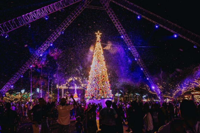 La Fête de la lumière a été inaugurée samedi soir, en présence de milliers de Nouméens rassemblés sur la place des Cocotiers. Photo Ville de Nouméa/Bryan GauvanLa Fête de la lumière a été officiellement lancée samedi soir, devant des milliers de Nouméens réunis pour l’occasion. Les 500 projecteurs et guirlandes lumineuses accrochés aux structures et aux arbres de la place des Cocotiers se sont allumés à 19h30. Ces illuminations seront visibles chaque soir, à partir de 19 heures, jusqu’au 31 décembre.