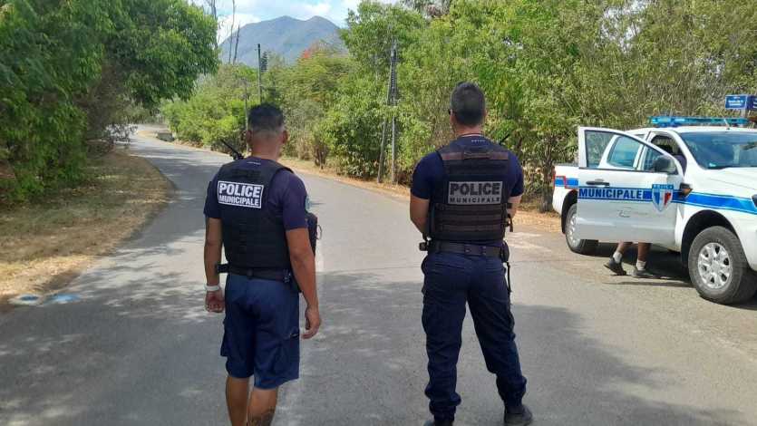 Des barrages filtrants sont déployés sur place, route de La Couvelée, à l’intersection de la route Daver. Seuls les habitants passent. Photo Anthony Tejero[14H15] Plusieurs coups de feu ont été tirés dans le nord de la commune de Dumbéa, ce vendredi, en fin de matinée, dans les secteurs du golf et de La Couvelée