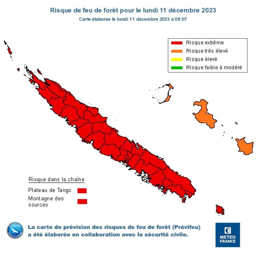 L’ensemble de la Grande Terre a été placé en vigilance rouge, soit un risque extrême de feu de forêt. Carte Météo FranceMERCI DE VOUS IDENTIFIER