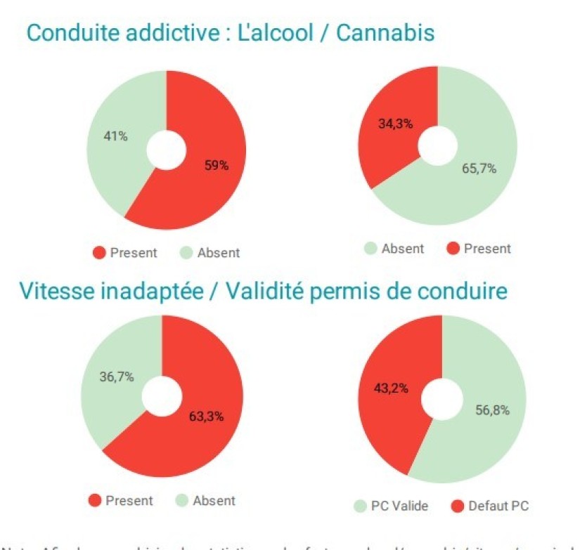 Les causes de ces accidents mortels restent, quant à elles, les mêmes, à commencer par une vitesse excessive (dans près de deux-tiers des cas), une consommation d’alcool (dans près de 60 % des accidents) ou encore un défaut de permis de conduire (constaté dans 43 % des décès).