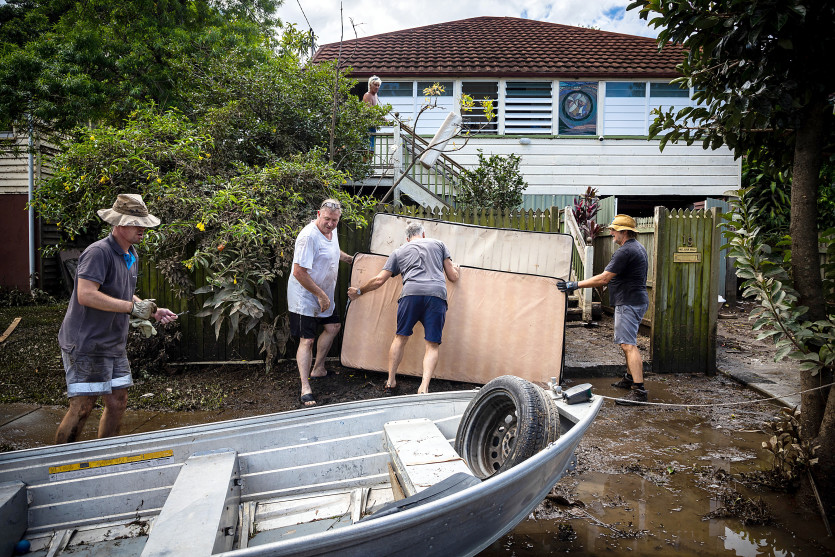 Dans la banlieue de Newmarket, à Brisbane, les habitants sont de retour dans leur maison pour nettoyer les dégâts causés par les inondations. AFP - PATRICK HAMILTONMERCI DE VOUS IDENTIFIER
