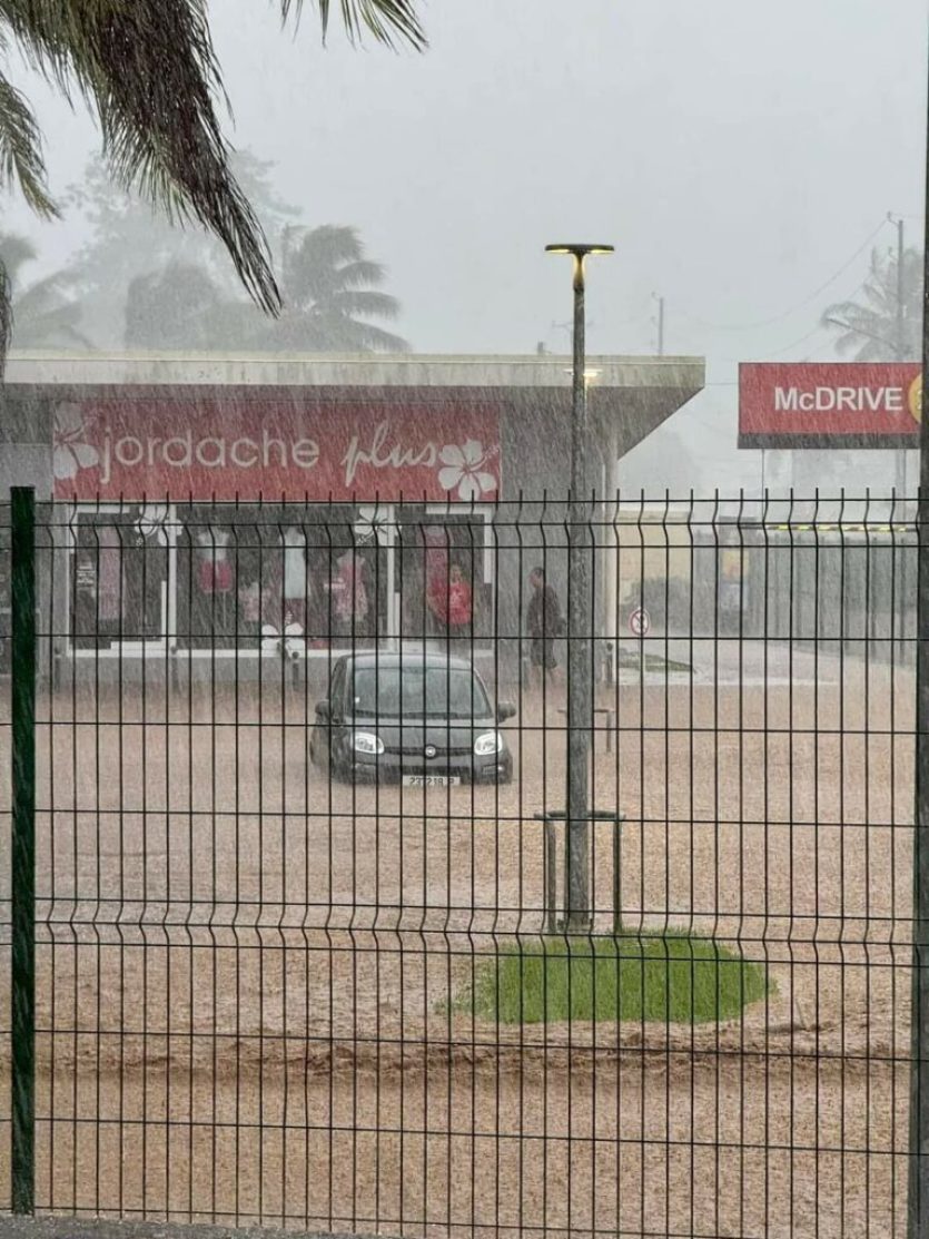 À Taravao, des parkings ont été inondés et certains commerces ont momentanément fermé leurs portes au public.