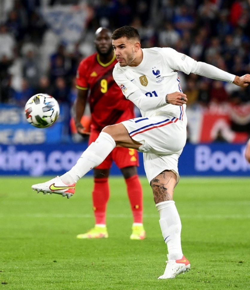 Lucas Hernandez au cours de la demi-finale de Ligue des Nations entre la France et la Belgique, le 7 octobre 2021 à Turin FRANCK FIFE [AFP/Archives]MERCI DE VOUS IDENTIFIER