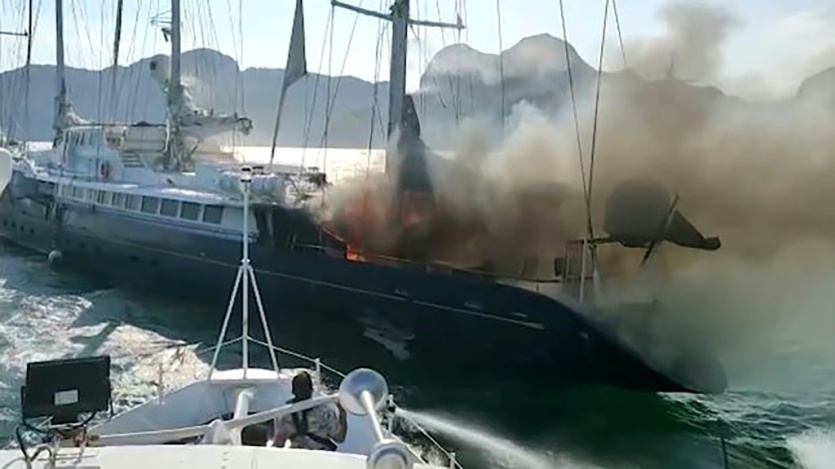 Capture d'écran d'une vidéo de l'incendie du Phocéa le 18 juillet 2021 sur l'île de Lankawi Handout [MALAYSIAN MARITIME ENFORCEMENT AGENCY/AFP]Il restera de ces navires qui ont fait rêver les amoureux de la mer mais dont l'histoire mouvementée aboutit à une fin tragique.