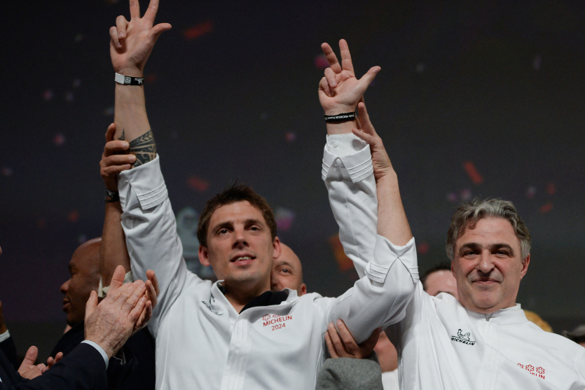 Ces deux nouveaux trois étoiles portent à 30 le nombre d’adresses triplement étoilées en France, après la rétrogradation il y a deux semaines du restaurant de la famille Meilleur, la Bouitte, dans les Alpes. En 2023, Alexandre Couillon, chef du restaurant La Marine à Noirmoutier (ouest), avait été le seul nouveau triple étoilé.