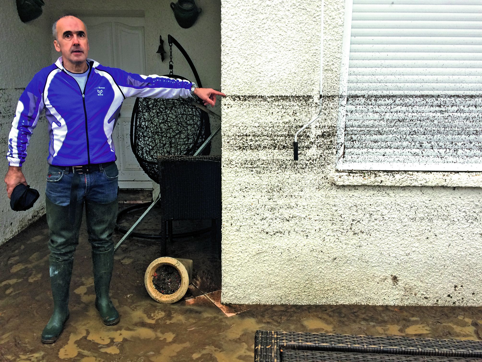 - Charlotte Durand/AFP | Crée le 16.10.2018 à 05h55 | Mis à jour le 16.10.2018 à 08h39ImprimerUn résident montre devant sa maison le niveau atteint par l'eau dimanche à Villegailhenc. Photo AFPMÉTÉO. Les pluies violentes qui se sont abattues sur l’Aude dans la nuit de dimanche à lundi ont fait six morts dans le nord du département. La crue a atteint un niveau sans précédent depuis 1891.