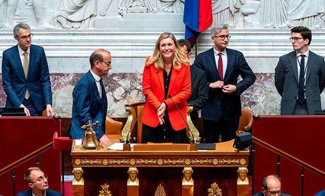 Au terme d’une journée "historique" et pleine de suspense, qui a vu affluer plus de 500 journalistes au Palais Bourbon, Mme Braun-Pivet a été élue au troisième tour avec 220 voix contre le candidat de la gauche André Chassaigne (PCF), 207 voix. Sébastien Chenu (RN) a quasiment fait le plein des suffrages de son camp avec 141 voix.