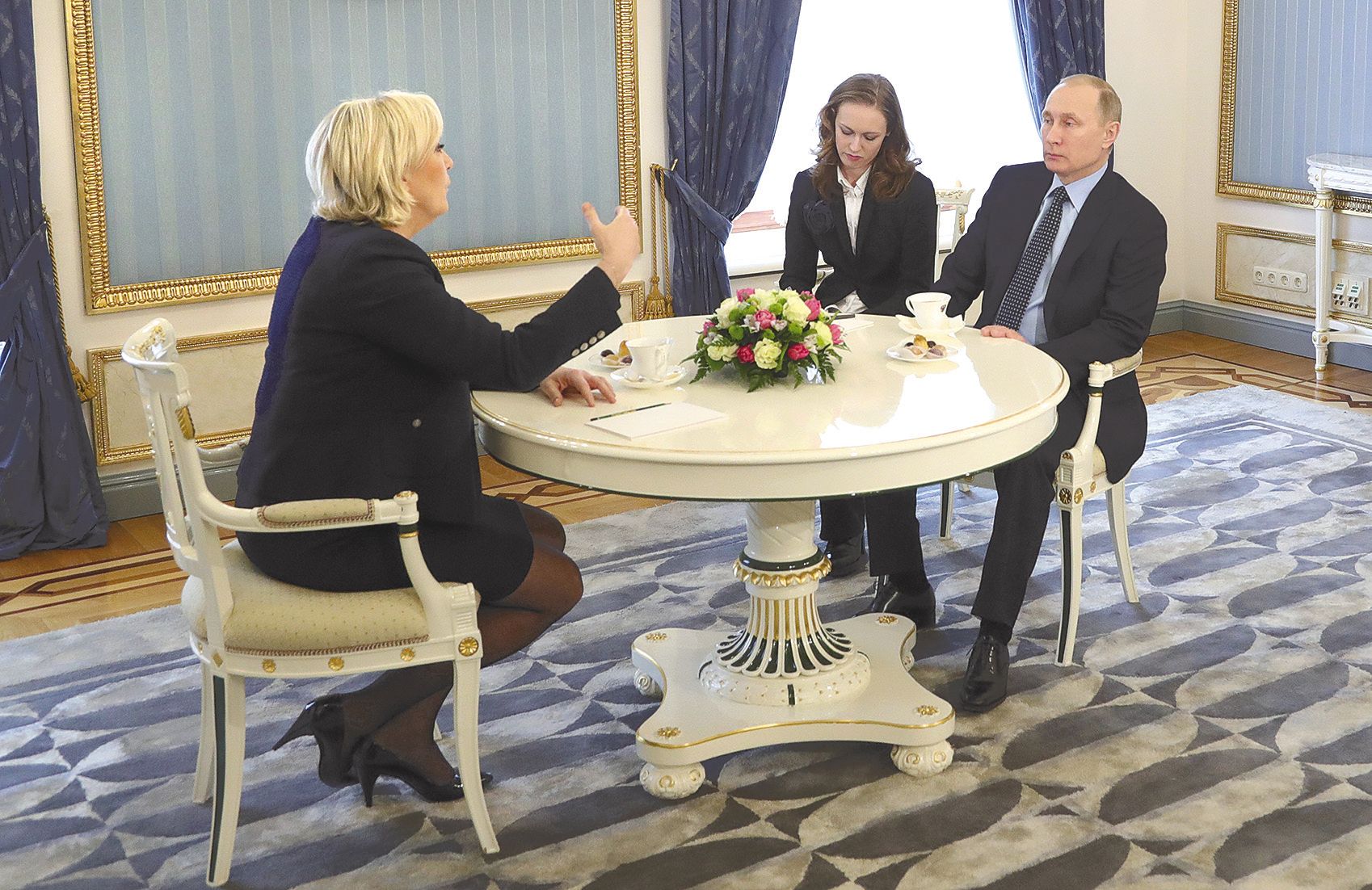- POLITIQUE. Le président russe Vladimir Poutine a reçu la dirigeante de l’extrême droite française, Marine Le Pen, samedi à Moscou.En rencontrant le chef de l’État russe à un mois du premier tour le 23 avril, la candidate du Front national réussit son coup : rencontrer le président d’une grande puissance et parfaire sa stature sur la scène internationale. Avant le président russe, elle n’avait rencontré que le préIl vous reste 90% de l'article à découvrir.Cet article est réservé aux abonnés.